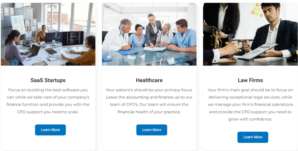 - Integrated CFO, fractional CFO, and controller services for operational excellence